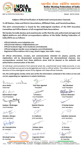 *We hereby formally declare and unanimously certify that the sole authorized and approved digital platforms and official correspondence address of the Roller Skating Federation of India (RSFI) are as follows:*