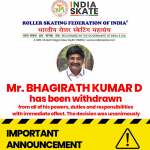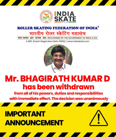 · *All powers, authorities, and duties vested in the post of the General Secretary, Roller Skating Federation of India are hereby withdrawn, and the charge is assigned to Mr. R. Pratap Kumar, State Information Commissioner (Retd.), Tamil Nadu & Joint Secretary, RSFI.*